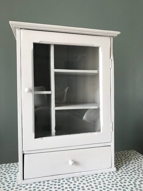 Armoire a pharmacie poncé et peinte en gris claire